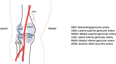 Symptomatic osteoarthritis (OA) of the knee is a leading cause of disability. One of the potential treatments to relieve symptomatology is genicular artery embolization (GAE). The hypothesis behind the treatment is that embolizing the angiographically hyperemic vessels of the affected knee may reduce the transport of proinflammatory and catabolic mediators and decrease stimulation of sensory nerves.